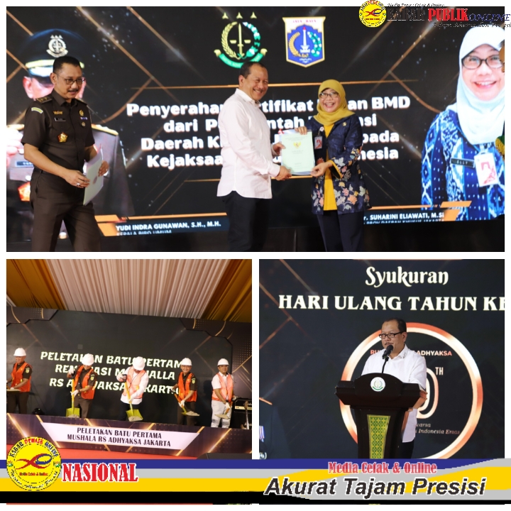 “Alhamdulillah pelayanan kesehatan yang baik yang dilakukan jajaran RSU Adhyaksa telah berhasil membuatnya naik kelas dari ‘C’ menjadi ‘B’ dan berhasil mendapatkan penetapan dari Kementerian Keuangan sebagai Rumah Sakit Badan Layanan Umum pada tanggal 5 April 2024 lalu,” imbuh Jaksa Agung.Jaksa Agung berharap capaian tersebut dapat mendorong RSU Adhyaksa untuk dapat terus berbenah dan memperbaiki diri dalam rangka memberikan pelayanan yang semakin optimal dalam mendukung penegakan hukum yang dilakukan oleh Kejaksaan sekaligus memberikan akses kesehatan yang berkualitas kepada masyarakat.